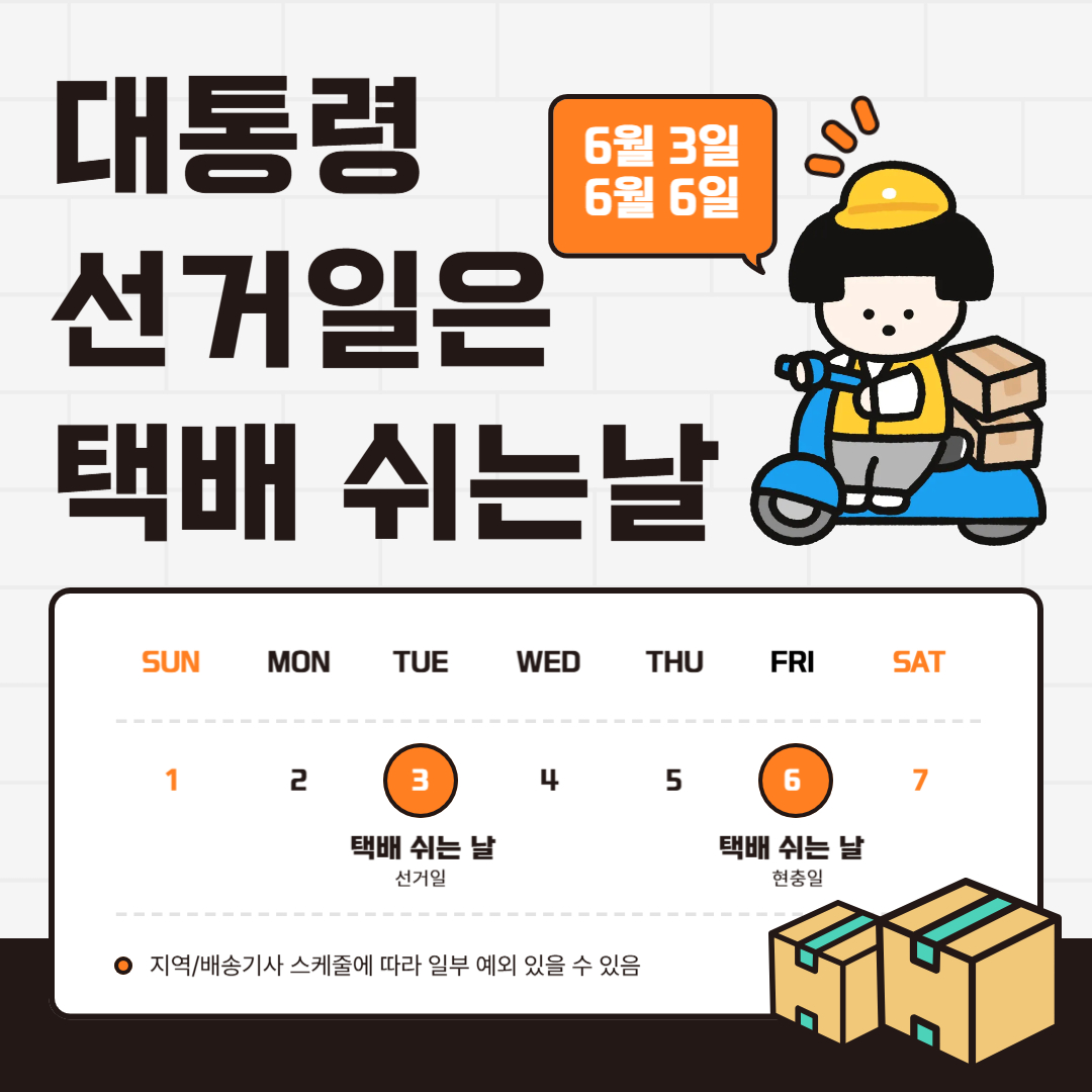 📌 6월 3일 대통령 선거일은 '택배 없는 날'
